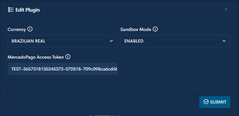 - MercadoPago Access Token - The access token from your mercadopago account.