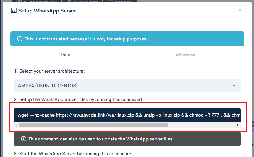 In this step, we will guide you on how to setup the WhatsApp server on the same VPS.