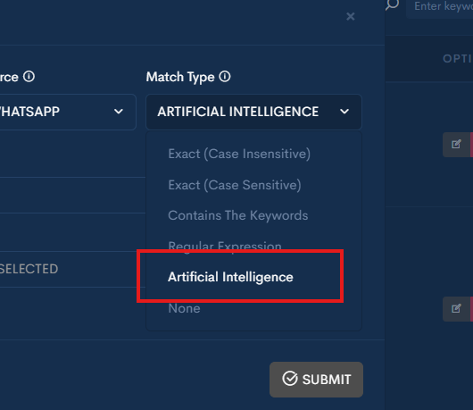 Once you are done entering other required fields, press "SUBMIT" and you're done. The AI should now respond to received messages of your selected "Source".