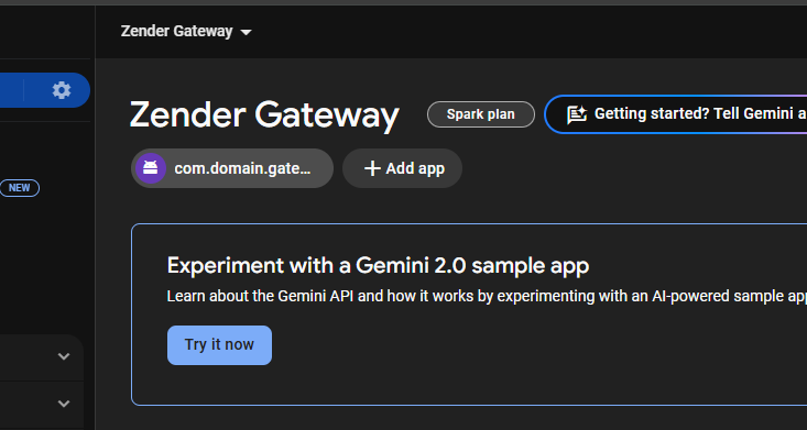 In the console dashboard, click the android icon